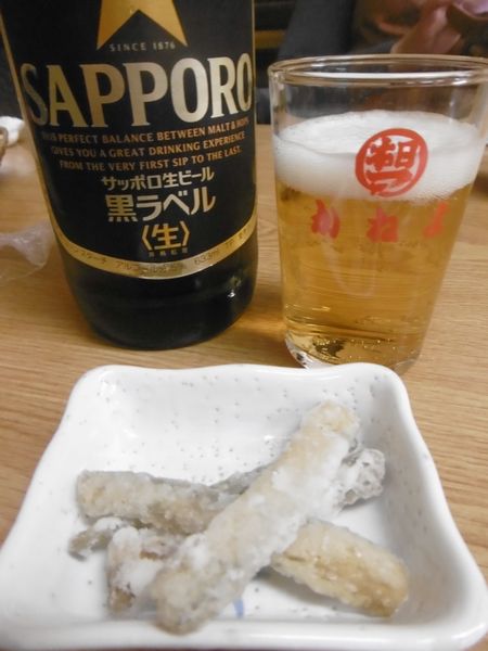 マズはビール(喜)いっぱい自転車漕いで汗かいたのでおいし~~。