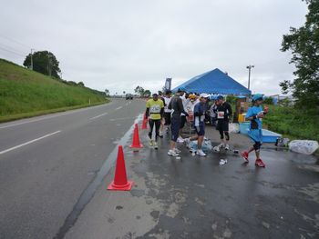 折り返しを通過し快調に走る。折り返しに向かうランナーと折り返したランナーでロードはごったがえしている。 |