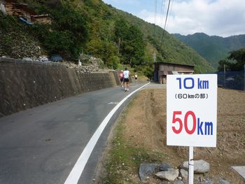 ![]() 峠へと続くロードを連なって走るランナーたち。 |