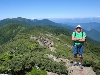 午前7時05分。遂に快晴の赤石岳(3120m)山頂へ立つ。