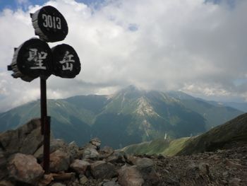 山頂からのパノラマ。こちらは左から兎岳(2818m)、聖岳(3013m)、その奥に赤石岳、悪沢岳。右手前のとんがったのが上河内岳。