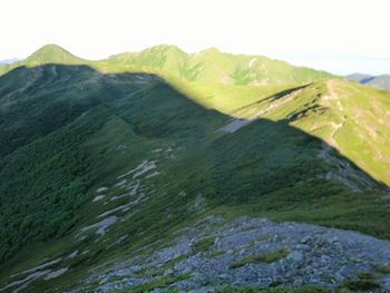振り返れば上河内岳。ちょうど茶臼と上河内岳の鞍部に出てきたわけだ。茶臼岳に向かいグングン高度を上げてゆく。