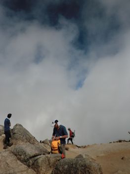 山頂部は比較的広く大勢の登山者で賑わっていた。