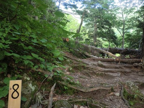 ここから烏帽子小屋までは標高差1214m、コースタイムで5時間20分の急登である。このように区間が12に分かれており、自分が今どのくらい進んだかわかるようになっている。
