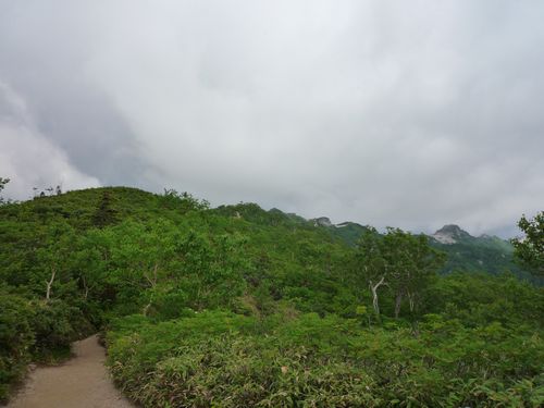 ![]() 赤岩岳が近づいてくる。前方にも青空が広がりだす。 |