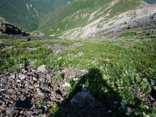 | 稜線接近!このあたりも素晴らしいお花畑・・・。 |