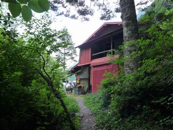 | おおっ!やっと大門沢小屋の赤い建物が見えてきた! |