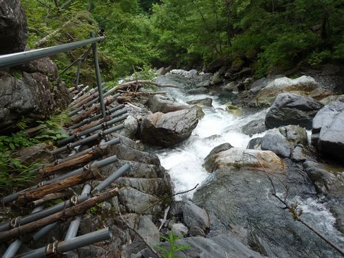 | 早川水系発電所の取水口の吊橋がようやく見えてきた。 |