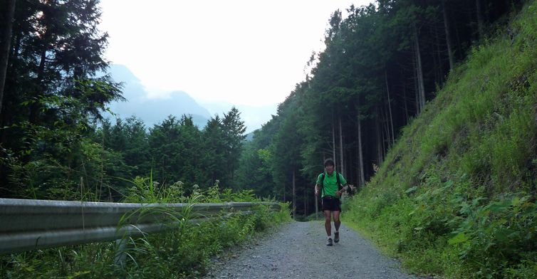 | すでにスタートから11時間を経過。最後の力を振り絞り林道を走り始めた。・・・と、300mも走っただろうか・・・。 |