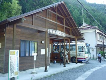 | 奈良田バス停留所。ここから広河原ゆきのバスに乗り、さらに広河原から芦安村のバスに乗り継いで車まで戻るのである。 |