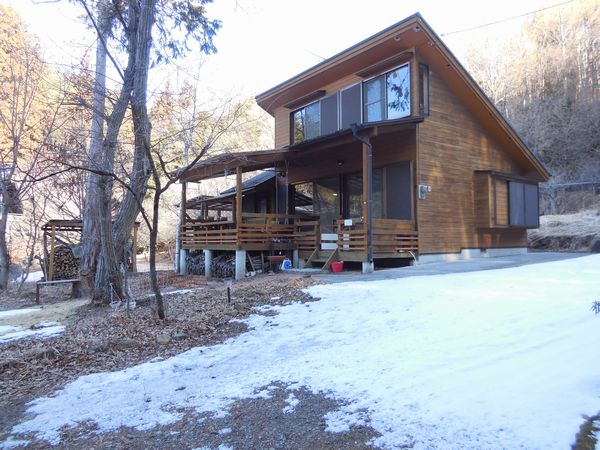 1月の最終土日に氷上トライアスロンに出場して以来、約1か月ぶりに上津金の山荘にやってきた。去年はこの時期大変な大雪だったが、この土日はすこぶる天候が良いということでイソイソとやってきたワケだ。山荘入口の急斜斜面には雪が・・・。