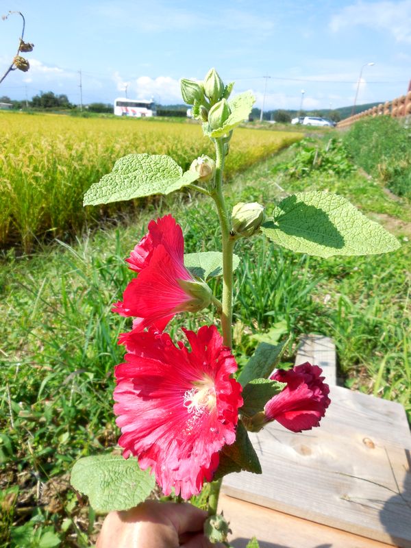 稲刈りを終えた田んぼもある。そんな中で、田植の時期から稲刈りの時期まで田んぼの片隅でズ~ット咲いているのがこの赤い花。実に印象的な花です。コメの他にも収穫期が近づいているのがある。ますはワイン用のブドウ畑へお~~っ!立派になって・・・次はリンゴ畑だ!八ヶ岳のブログランキングに参加しています。下のマークをクリックすると得点が入ります。ご覧になりましたら是非「ポチッ」とお願いします。応援よろしく!