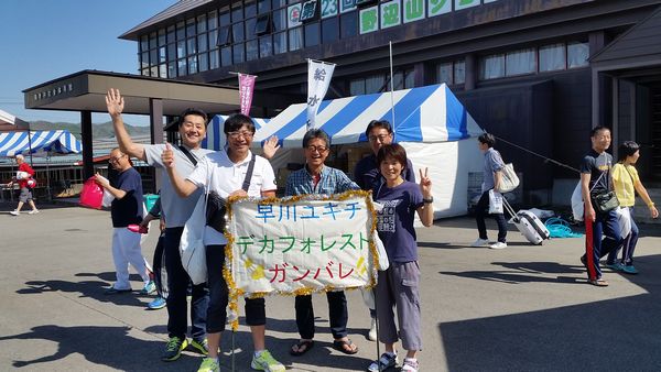 午後1時スギ、車でコース後半部分を試走して大会受付会場である野辺山社会体育館に到着。それにしても74キロから5k続く馬越峠(標高1610m)への登り(高度約600m)は気持ち悪かった(笑)。素晴らしい天気だ。八ヶ岳には山頂部にまだ雪が残る。受付会場へユプシロン(20回完走)とデカフォレスト(10回完走)リーチの人には特別受付ブースが用意されていた。ゼッケンもデカリーチ専用(喜)スパイダーマンが演奏して盛り上げてくれていた。(レース中も活躍していたな)体育館内のファイテンシップにてなくなったアーチを復活させるマッサージを受ける。去年やってメチャ効いたのだ。もちろん無料。シュップのお兄さん、ありがとう!くわ~~・・・、痛~、効く~!1台75000円とか。聞けば、整骨院や鍼灸院等にけっこう売れているとか。施術前に患者さんに無料でこれに利用してもらうと大変喜ばれるうえに、足がほぐれて施術が非常にやりやすくなるので先生方に気に入ってもらってるらしい。いずれにしてもグーンと楽になった(喜)仲間が集まり記念撮影。なんと横断幕まで作ってくれました!感激!こりゃ~、なんとしても完走せんとね。とうことで、2時半には大会会場をでて山荘へ。テラスでバーベキューしてガッツリ食って呑んで7時には床に就いたのでありました。