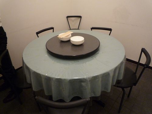 そして奥の間に円卓テーブルがひとつ・・・。12〜13名入ればイッパイのお店である。