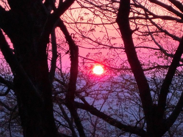 来た〜っ!お日様〜っ!森の中でご来光。暖かい光が満面に満ちてくる。寒かったし、こんなに太陽に感謝したことはあっただろうか・・・。
