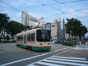 最後に富山市を少しご紹介しましょう!駅の挟んで北口側はビジネスビルが立ち並び、都市計画により、新しく計画整備されたようだ。その代表選手がこの富山ライトレール。バリヤフリーの低床車両、高頻度運行など地域密着のサービスをおこなう交通システムがある。
