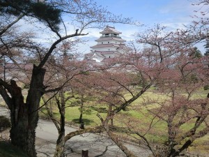 お~、若松城、素晴らしい。地元では鶴ヶ城と呼ばれている。屋根が「赤瓦」にすべて葺き替えられ、昔のままに再現完了。開花したての桜でも、このとおりの風情・・・。