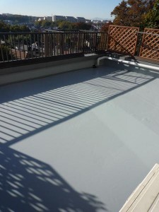 10月下旬より行われていたルーフバルコニーの防水工事がやっと終わった。 工事に先立ち、貼ってあった人工芝を一人で撤去した。撤去を頼むと結構高くつくので、貧乏根性が爆発し、パワーで全面引き剥がし捨てた。もう手がボロボロになった・・・(泣)。