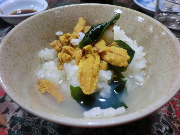 とは~!、うまいっすね~、これ~!特にウニとアワビの旨みがしみ込んだ汁が実においしい・・・。