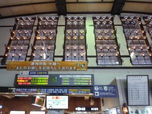 小樽駅の「売り」は駅構内の天井近くまで連なって飾ってあるこのランプ!実に風情がありますな~・・・。